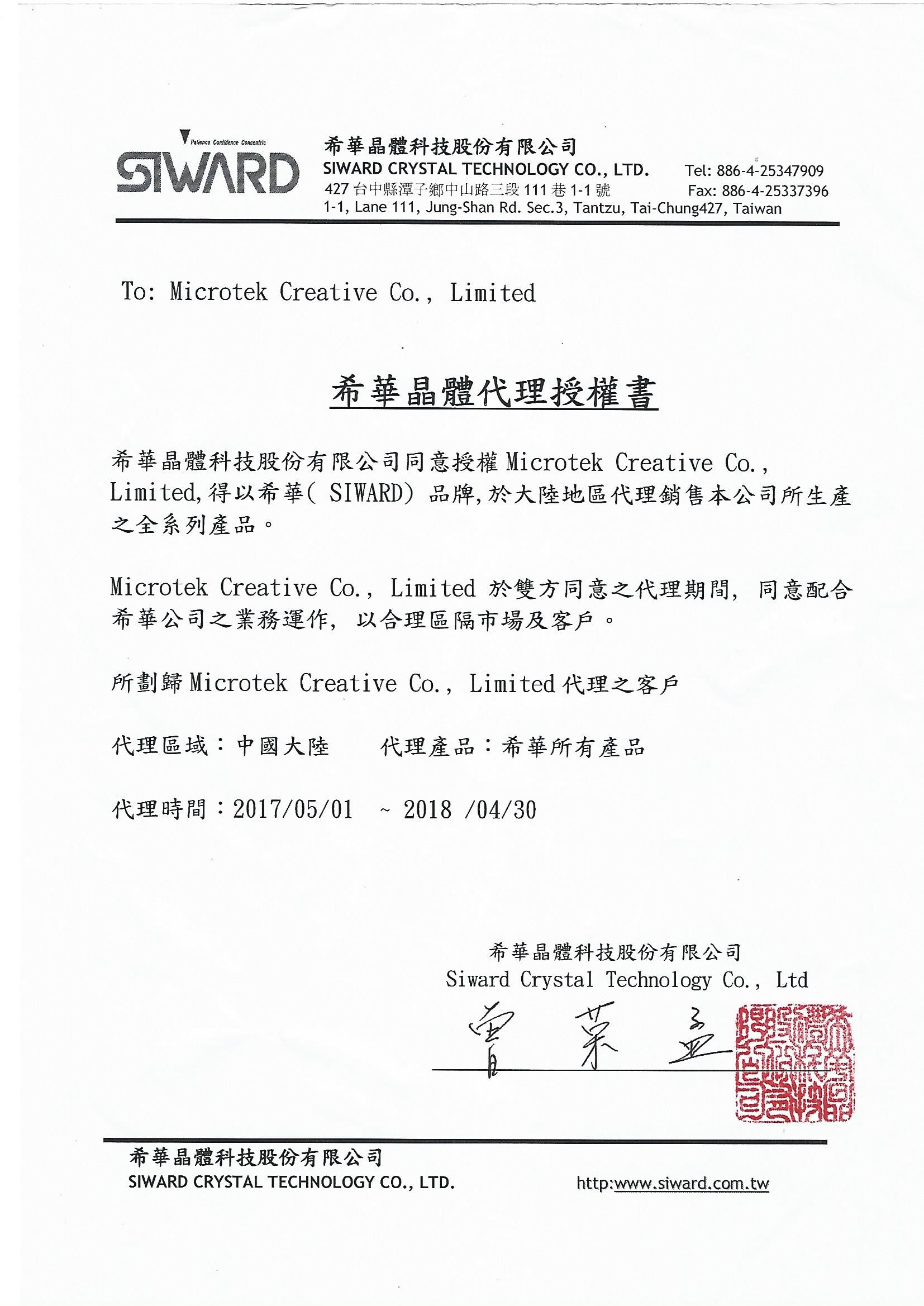 Microtek-希华代理证2017年